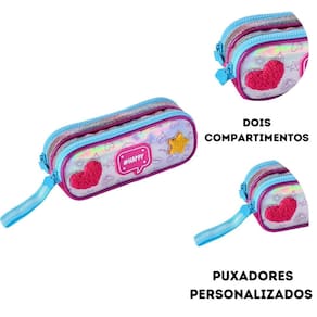 Acabamento Holográfico Atraente: O estojo conta com um design holográfico que reflete diferentes cores e luzes, criando um efeito visual único e impressionante. Este acabamento não apenas destaca o estojo, mas também adiciona um toque de modernidade e estilo ao material escolar da criança.