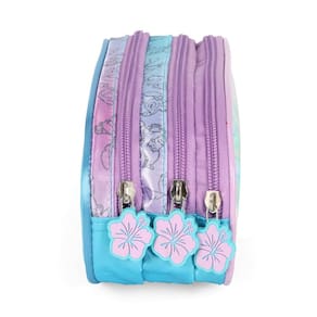 O modelo possui três compartimentos tornando-o ideal para estudantes que precisam carregar uma grande quantidade de material. Além disso, os puxadores personalizados adicionam um toque de charme e personalidade ao estojo.