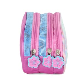 O modelo possui três compartimentos tornando-o ideal para estudantes que precisam carregar uma grande quantidade de material. Além disso, os puxadores personalizados adicionam um toque de charme e personalidade ao estojo.