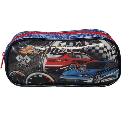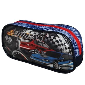 Estojo grande para guardar lápis, canetas, giz de cera, borracha, apontador, ufa, bastante coisa né Ele é lindo com a estampa dos carros apostando corrida e na parte de baixo do estojo tem escrito várias vezes hotwheels, bem lúdico. Ele tem 1 compartimento com zíper. Recomendado para crianças com mais de 3 anos de idade. Certificado pelo INMETRO REGISTRO 003927/2020