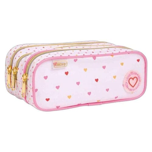 Estojo Escolar Infantil Triplo Académie Coração Metalizado Rosa - Tilibra