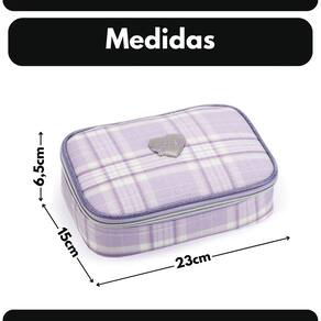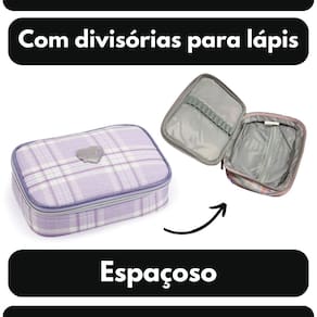 Design Exclusivo e Moderno: Apresenta uma estampa xadrez exclusiva que combina perfeitamente com o estilo teen, adicionando um toque de personalidade ao seu material. Detalhe Brilhante: Um lindo coração metálico com a palavra "Just" decora a parte frontal, adicionando um toque de delicadeza e um brilho sutil. Organização Impecável: Equipado com divisórias internas inteligentes, este estojo mantém seus lápis, canetas, borrachas, maquiagens ou pequenos acessórios sempre no lugar, evitando bagunça e facilitando o acesso. Material Resistente: Confeccionado em 100% Poliéster de alta qualidade, garante excelente resistência ao uso diário, prolongando a vida útil do seu estojo e tornando-o fácil de limpar. Versatilidade: Perfeito como estojo escolar, pode ser facilmente adaptado como nécessaire para maquiagens, organizador de pequenos itens eletrônicos, ou para guardar seus objetos essenciais com muito estilo. Especificações Técnicas: