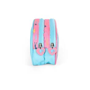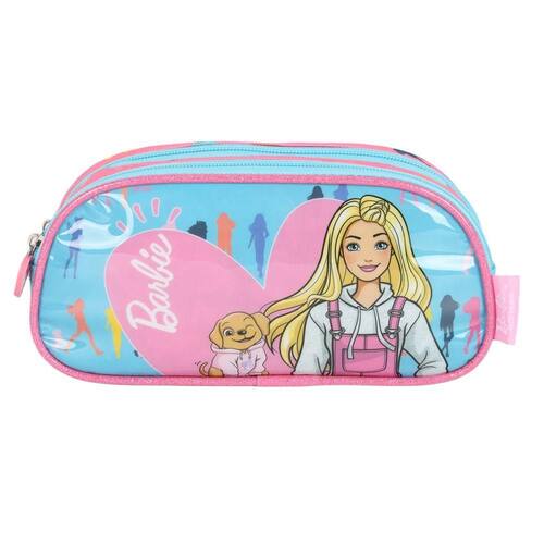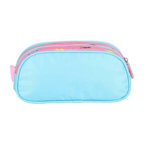Estojo é super espaçoso e cabe todos os seus materiais de escrita. Ele é composto por os materiais vão soltos dentro do compartimento.