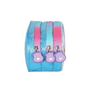 Estojo é super espaçoso e cabe todos os seus materiais de escrita. Ele é composto por os materiais vão soltos dentro do compartimento.