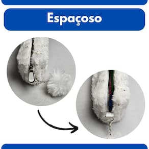 Material Premium: Confeccionado em pelúcia branca super macia e fofinha, este estojo não é apenas um item funcional, mas também um acessório de moda que encanta ao toque e à vista. Design Exclusivo "Estrelas com Glitter": O corpo do estojo é adornado com delicados paetês/argolas coloridas que brilham e refletem as cores do arco-íris, criando um efeito divertido e glamoroso que chama a atenção. O arranjo dos paetês lembra pequenas "Estrelas com Glitter" vibrantes, adicionando um toque de fantasia e alegria. Zíper Arco-Íris: O fechamento seguro é garantido por um zíper vibrante em degradê de cores arco-íris, que complementa perfeitamente a estética alegre do estojo. Pompom Fofo: Para completar o visual encantador, um pompom de pelúcia super macio decora o puxador do zíper, tornando-o ainda mais estiloso e fácil de manusear.