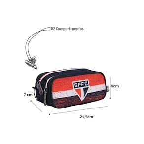Prepare-se para levar toda a sua material escolar com a cara do o estojo duplo é perfeito para quem busca praticidade e muito charme, com dois compartimentos espaçosos que organizam lápis, canetas e acessórios com facilidade. Características principais: - dois compartimentos amplos com zíper resistente, para melhor organização. - material resistente em poliéster, com acabamento premium. - puxadores personalizados em alta relevo, com toque especial . - estampa sublimada exclusiva com as cores e escudo do tricolor paulista. - tamanho compacto e ideal para carregar na mochila ou estojo escolar. Com o estojo duplo , você leva a força e tradição do seu time para a escola, com organização, qualidade e muito estilo Cuidados: - guarde em um local seco e arejado evitando locais úmidos. - evite colocar excesso de peso no produto para não forçar os zíperes e costuras. - proteja os objetos cortantes e/ou pontiagudos evitando o contato direto com o produto. - evitar altas temperaturas. - cores claras poderão manchar quando em contato com outros objetos ou roupas de cores pigmentadas. Dicas de limpeza: - para a limpeza utilize apenas pano úmido com sabão neutro. - não mergulhar na água e não utilizar componentes químicos, solventes ou alvejantes. - não deixar de molho e secar a sombra. Marca: Não Informado