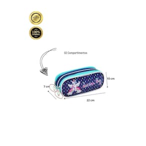 Dois confeccionado em Poliéster Fechamento em zíper Compartimentos espaçosos Design exclusivo Medidas aproximadas: Altura: 10 cm Largura: 7 cm Comprimento: 22 cm CUIDADOS: - Guarde em um local seco e arejado evitando locais úmidos. - Evite colocar excesso de peso no produto para não forçar os zíperes e costuras. - Proteja os objetos cortantes e/ou pontiagudos evitando o contato direto com o produto. - Evitar altas temperaturas. - Cores claras poderão manchar quando em contato com outros objetos ou roupas de cores pigmentadas.