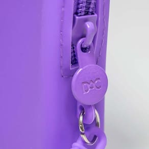 Disponíveis em duas cores, roxo e rosa. Tamanho:20,5mm x 103mm x 25mm. Com 01 Zíper. Material: Silicone.