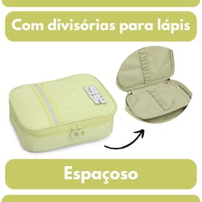 A funcionalidade e impecavel: com dimensoes ideais de 22 x 16 x 6 centimetros, oferece um equilibrio perfeito entre capacidade e praticidade. As ingenhosas divisorias internas foram cuidadosamente pensadas para manter lapis, canetas, borrachas e apontadores perfeitamente organizados. Diga adeus a bagunca e ganhe tempo precioso, encontrando tudo o que precisa com facilidade e mantendo o foco nos estudos.