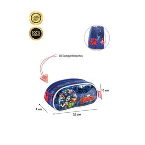 Estojo Escolar Triplo Avengers: Confeccionado em Poliéster Fechamento em zíper 3 compartimentos espaçosos Design exclusivo Medidas aproximadas: Altura: 10 cm Largura: 7 cm Comprimento: 22 cm CUIDADOS: - Guarde em um local seco e arejado evitando locais úmidos. - Evite colocar excesso de peso no produto para não forçar os zíperes e costuras. - Proteja os objetos cortantes e/ou pontiagudos evitando o contato direto com o produto. - Evitar altas temperaturas. - Cores claras poderão manchar quando em contato com outros objetos ou roupas de cores pigmentadas.