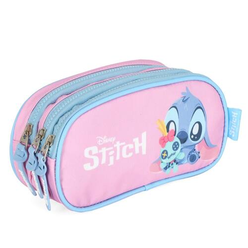 Estojo Escolar Triplo Stitch Disney 3 Divisorias Cor Rosa