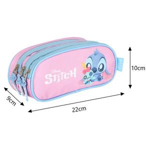 Estojo Escolar 3 Repartições Stitch Rosa   O Estojo Escolar Juvenil Stitch Disney é um produto de alta qualidade, fabricado em poliéster resistente, garantindo durabilidade e resistência ao uso diário. Com uma cor unica, este estojo é perfeito para jovens que adoram a personagem Stitch da Disney.   O modelo possui três compartimentos tornando-o ideal para estudantes que precisam carregar uma grande quantidade de material. Além disso, os puxadores personalizados adicionam um toque de charme e personalidade ao estojo.   O Estojo Stitch é conhecida pela qualidade e design de seus produtos, e este estojo não é exceção. Com sua capacidade e estilo, é uma escolha perfeita para o uso escolar ou juvenil.   Características do Estojo Escolar: - 3 Repartiçoes com bastante espaço - Fecho com zíper personalizado e emborrachado - Estampa Stitch - Modelo Unico e Exclusivo - Material: 100% Poliéster - Material Forro: 100% Poliéster   Dimensões do Estojo Escolar: - Altura: 10 cm - Largura: 22 cm - Profundidade: 9 cm   Conteúdo: - 1 Estojo