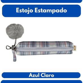 Estojo Escolar Xadrez Azul Claro com Pompom Multiuso Organizador Aulas Colorido Lápis Material Cor