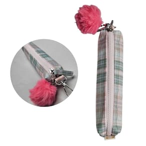 Estojo Multiuso Design Xadrez Pastel com Pompom Fofo Removível - Leve e Compacto