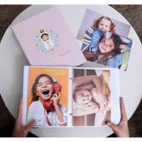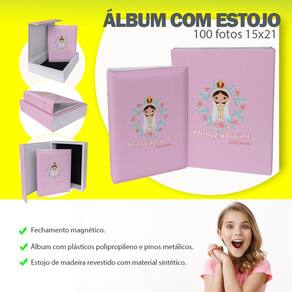 - Acompanha álbum com capa almofadada em material sintético com 50 folhas plásticas.