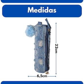 Design Autêntico e Despojado: Jeans "Destroyed" Autêntico: Confeccionado em um material resistente que imita o jeans azul clássico, com acabamento rasgado e desgastado propositalmente, conferindo um estilo "destroyed" super moderno e descontraído. Cada detalhe contribui para um visual único. Pompom Azul Claro: Um pompom macio e felpudo na cor azul claro adiciona um toque divertido e charmoso ao puxador do zíper, criando um contraste interessante com o estilo robusto do jeans. Acabamento Detalhado: Possui um zíper azul escuro que complementa o material e garante um fechamento seguro. Formato Prático: Seu design alongado e cilíndrico é ideal para carregar seus pertences de forma organizada e estilosa. Organização com Atitude: Espaço Versátil: Perfeito para guardar e organizar lápis, canetas, borrachas, apontadores, maquiagens, pequenos acessórios eletrônicos, fones de ouvido ou quaisquer outros itens pessoais. Fechamento Seguro: O zíper resistente garante que seus pertences fiquem protegidos e bem guardados, evitando perdas e bagunça. Leve e Portátil: Com apenas 33 gramas e dimensões otimizadas, é fácil de transportar na mochila, bolsa ou como um acessório de mão, sem adicionar peso extra. Versatilidade para Todas as Ocasiões: Este estojo multiuso pode ser utilizado como necessaire, porta-maquiagem, porta-objetos para a bolsa ou um toque de estilo para a sua mesa de estudos ou trabalho. É ideal para estudantes, jovens e adultos que amam moda e personalidade.