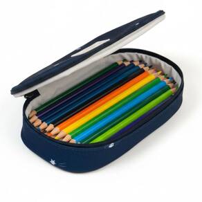 Confeccionado em poliéster, o estojo é leve, resistente e fácil de manusear. Seu compartimento interno único oferece espaço ideal para guardar lápis, canetas, borracha e outros itens essenciais, mantendo tudo organizado e sempre à mão.
