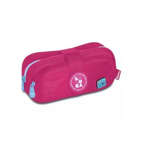 Com design compacto e funcional, o estojo possui dois compartimentos com fechamento por zíper, permitindo organizar seus materiais com facilidade. Os detalhes incluem pin de metal e puxador de zíper personalizado, garantindo estilo e durabilidade.