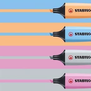 Os marcadores Stabilo Boss são os mais vendidos do mundo, e agora você pode ter as cores pastel em um único kit. Com tecnologia Anti-Dry-Out, eles ficam protegidos por até 4 horas sem secar, mesmo destampados. Isso significa que você pode usá-los por mais tempo, sem se preocupar com a durabilidade da tinta.