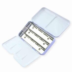 Estojo Metal com Tampa para acondicionamento de 12 Pastilhas de Aquarela White Nights. Robusto, reutilizável e com exterior de esmalte brilhante e interior de esmalte branco com uma paleta desdobrável para mistura de cores. Crie sua própria paleta de cores com as pastilhas White Nights nesta charmosa lata ergonômicas. Estojo de Metal: 2x7x12cm