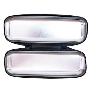 Estojo de metal branco com 6 x 3.5 x 19 cm de dimensão, estampa com personagens da Disney na versão Tsum Tsum. Fechamento a zíper; Material: metal, plástico e poliéster
