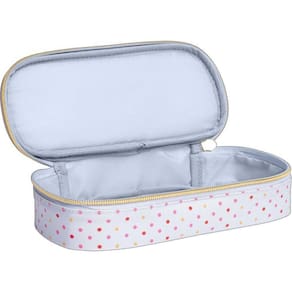 Estojo Minibox Academie Coracao Metalizado Azul Tilibra Marca: Tilibra O estojo minibox é a versão mais compacta do estojo box. O produto, confeccionado em material resistente e estruturado, com fechamento em zíper, é perfeito para quem gosta de uma opção com armazenamento amplo, mas ainda sim quer um modelo com tamanho mais compacto. O minibox, além de ser um ótimo estojo escolar, também pode guardar maquiagens e outros tipos de acessórios pequenos. Leve o seu Compartimento: um Detalhe: aplique emborrachado Divisória Central: Sim Fechamento: em zíper Formato: L 90mm x A 210mm x P 30mm Forro: Sim : contra defeitos de fabricação Material: Nylon Puxador: em metal Marca: Não Informado Ean: 7891027354138