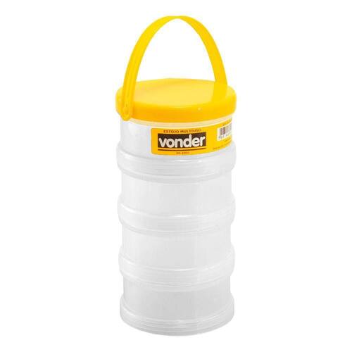 Informações do produto: Estojo Multiuso VD 4003. Composto de 4 partes rosqueáveis - 61.07.400.300 Indicado para acondicionar/organizar pequenas peças em geral. Com tampa e alça. Possui 4 partes rosqueáveis umas nas outras.Informaçõestécnicas: DiÂmetro do estojo multiuso 90.0 mm Altura do estojo multiuso 130.0 mm Material do estojo multiuso Plástico Garantia - E CDC Garantia legal 90 diasConteÚdo da Embalagem: - 1 Estojo multiuso. Ean: 7893946047795