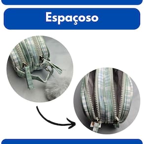 Não perca a oportunidade de ter um item funcional, versátil e cheio de estilo que vai simplificar sua rotina e adicionar um toque de charme! Adquira já o seu Estojo Necessaire Duplo Xadrez Verde com Pompom.