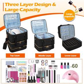 Estojo organizador de esmaltes Cheungren — Bolsa de armazenamento de esmaltes de três camadas com divisórias ajustáveis contém 84 garrafas de esmalte, lâmpada de unhas, kit de unhas, suprimentos, caixa organizadora — preta — Design de três camadas Design: nossa capa organizadora de esmaltes foi projetada com três camadas, o que pode tornar seus esmaltes e ferramentas de esmalte mais organizados. As duas camadas inferiores são usadas para colocar vários esmaltes e a camada superior tem uma divisória para colocar várias ferramentas de esmalte. - Material de alta qualidade: a bolsa de esmalte é feita de material não tecido, que é muito durável. O bloco de armazenamento de unhas é feito de excelente material EVA, que tem boa elasticidade e pode proteger o frasco de esmalte, sem se preocupar com colisões e quebras. - Armazenamento de grande capacidade: três camadas de bolsa de esmalte podem acomodar mais esmaltes e ferramentas. As duas camadas inferiores são equipadas com blocos de armazenamento de unhas de EVA, que podem acomodar até 84 frascos de esmalte. A camada superior é usada para acomodar lâmpadas de esmalte, pincéis de esmalte e várias ferramentas de esmalte. Uma bolsa organizadora de esmaltes pode atender completamente a todas as suas necessidades. - Portátil para transportar: o tamanho da caixa organizadora de esmaltes é (10,6 * 8,7 * 9,5 polegadas (L* W* H)), era fácil de guardar e transportar. Tanto em casa quanto em viagens, não ocupa muito espaço e pode transportar seu acessório de unhas.