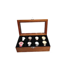 Compre agora o Estojo para 08 Relógios - Tabaco flocado de Preto e mantenha sua coleção de relógios protegida e organizada com estilo e elegância!