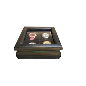 Prático e luxuoso, na linha madeira maciça encontrarmos um toque vintage, objeto decorativo onde são visíveis os veios naturais da madeira, com um formato arredondado dando um estilo mais atraente para sua coleção. Nossos estojos irão facilitar seu dia a dia com a organização e segurança que sua coleção precisa, além de proporcionar um ambiente mais sofisticado e elegante. Produzida com madeira natural de reflorestamento. Escolhida rigorosamente, totalmente tratada, tingida e envernizada externamente. Internamente, inclusive as divisórias são revestidas com nylon aveludado e as almofadas que acompanham o produto, normalmente são também em tecido aveludado. Na linha madeira maciça é possível observar os veios naturais da madeira. As dobradiças não são aparentes e possuem um limitador. A tampa possui visor com vidro transparente. Acompanha um fecho giratório em metal, ideal para colocar cadeado. Seus relógios sempre bem protegidos e acomodados confortavelmente, com toda segurança e facilidade no manuseio. Características das caixas para relógio: Padrão Ébano; Produto fabricado em madeira maciça de qualidade; Não empena; Revestimento interno aveludado, inclusive as divisórias; Tampa de vidro 2 mm; Acompanha almofadas para todos os casulos; Medidas aproximadas dos casulos larg x comp x alt : 7,5 x 7,5 x 7,0 cm; Relógios não acompanham o estojo Imagens meramente ilustrativas