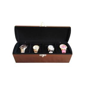 Prático e luxuoso, na linha madeira maciça encontrarmos um toque vintage, objeto decorativo onde são visíveis os veios naturais da madeira. Nossos estojos irão facilitar seu dia a dia com a organização e segurança que sua coleção precisa, além de proporcionar um ambiente mais sofisticado e elegante. Produzida com madeira natural de reflorestamento. Escolhida rigorosamente, tratada com fungicidas e anti-cupins. Envernizada externamente com verniz poliuretano industrial. Internamente as laterais e divisórias são revestidas com nylon aveludado. E as almofadas que acompanham o produto, normalmente são também em tecido aveludado. Na linha madeira maciça é possível observar os veios naturais da madeira. As dobradiças não são aparentes e possuem um limitador. A tampa possui visor com vidro transparente. Acompanha um fecho giratório de pressão em metal, ideal para colocar cadeado. Seus relógios sempre bem protegidos e acomodados confortavelmente, com toda segurança e facilidade no manuseio. Características das caixas para relógio:- Produto fabricado em madeira maciça de qualidade- Padrão cor Cerejeira/Ébano/Tabaco- Não empena, não trinca, não racha- Revestimento interno aveludado, inclusive as divisórias- Fecho giratório de pressão em metal suporta cadeado - Tampa de vidro 2 milímetros- Acompanha almofadas para todos os casulos- Medidas aproximadas dos casulos larg x comp x alt : 7,5 x 7,5 x 7,5 cm Relógios não acompanham o estojo - Imagens meramente ilustrativas