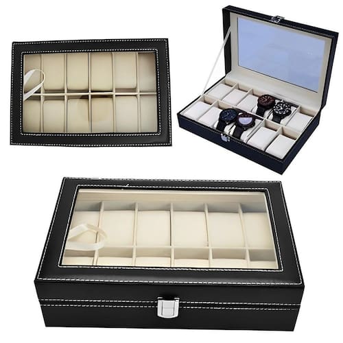 Estojo para 12 relógios interno aveludado preto - organize e proteja sua coleção com elegância