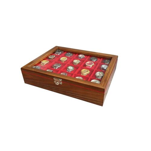 Prático e luxuoso, na linha madeira maciça encontrarmos um toque vintage, objeto decorativo onde são visíveis os veios naturais da madeira. Nossos estojos irão facilitar seu dia a dia com a organização e segurança que sua coleção precisa, além de proporcionar um ambiente mais sofisticado e elegante.Produzida com madeira natural de reflorestamento. Escolhida rigorosamente, totalmente tratada, tingida e envernizada externamente. Internamente, inclusive as divisórias são revestidas com nylon aveludado e as almofadas que acompanham o produto, normalmente são também em tecido aveludado. Na linha madeira maciça é possível observar os veios naturais da madeira. As dobradiças não são aparentes e possuem um limitador. A tampa possui visor com vidro transparente. Acompanha um fecho giratório de pressão em metal, ideal para colocar cadeado. Seus relógios sempre bem protegidos e acomodados confortavelmente, com toda segurança e facilidade no manuseio. Características das caixas para relógio:- Produto fabricado em madeira maciça de qualidade,- Padrão Ébano- Não empena,- Revestimento interno aveludado, inclusive as divisórias,- Fecho giratório de pressão em metal suporta cadeado ,- Tampa de vidro 2 mm,- Acompanha almofadas para todos os casulos,- Medidas aproximadas dos casulos larg x comp x alt : 7,5 x 7,5 x 7,0 cm.Relógios não acompanham o estojo - Imagens meramente ilustrativas