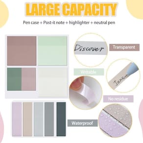 Nossas lindas notas adesivas vêm em 11 tamanhos diferentes e são adequadas se você precisa deixar uma mensagem em um espaço grande ou como uma nota em um documento de papel, e as notas adesivas translúcidas tornam suas marcações mais visíveis.