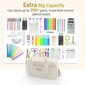 Estojo de lápis grande Sooez, bolsa de lápis extra grande com 5 compartimentos, bolsa para canetas de abertura ampla, organizador de bolsas macias de waffle com zíper, lindo material escolar estético para meninas adolescentes, rosa