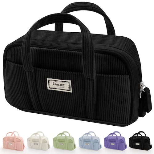 Estojo grande Sooez, bolsa de lápis extra grande com 5 compartimentos, bolsa para canetas de abertura ampla, organizador de bolsas de veludo macio com zíper, lindo material escolar estético para meninas adolescentes, preto