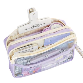 Material: Peso do tecido: 100 g Tamanho: 200 mm* 45 mm* 120 mm Design fofo e transparente — apresenta uma visão clara de todos os seus suprimentos, com adoráveis detalhes em tons pastel e uma linda estampa de personagem, tornando a organização divertida e elegante. Armazenamento de grande capacidade — Vários compartimentos permitem uma organização organizada de canetas, lápis, marcadores, borrachas e outros itens essenciais da escola, mantendo tudo de fácil acesso. Durável e leve — Feita com tecido de alta qualidade e material de PVC transparente, esta bolsa de lápis é resistente e leve, perfeita para uso diário. Portátil e conveniente — Projetada com um zíper superior e um gancho conveniente, esta bolsa para lápis é fácil de transportar em mochilas ou pendurar para acesso rápido. Perfeito para escola e escritório — Ideal para crianças em idade escolar, estudantes e funcionários de escritório organizarem canetas, material de escritório ou até mesmo cosméticos de uma forma elegante.