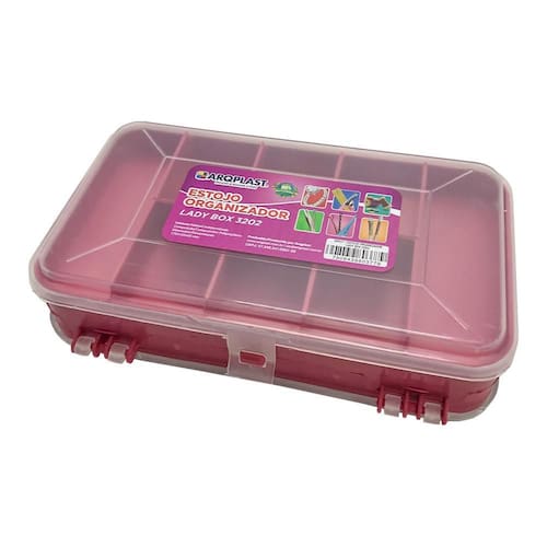 ESPECIFICAÇÕES: Marca: Arqplast Modelo: Lady Box 3202 Tamanho com. X alt. X larg. : 175mm X 45mm X 105mm Cor: Rosa Material: Polipropileno Divisórias: 13 divisórias Ean: 7908439803779