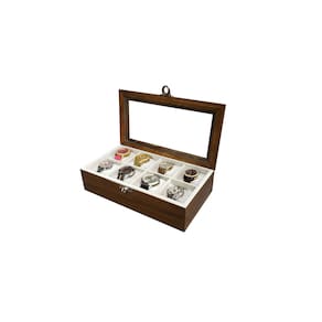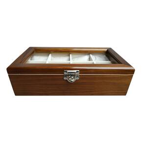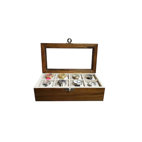 O Estojo para 08 relógios MADEIRA Imbuia flocado de bege é um produto prático e luxuoso, perfeito para organizar e proteger a sua coleção de relógios. Feito com madeira natural de reflorestamento, este estojo possui um toque vintage e é um objeto decorativo que combina sofisticação e elegância.