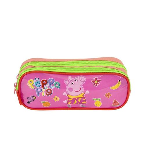 A porquinha mais famosa da TV está com uma linha completa para a escola O Estojo 2 Compartimentos Peppa M Fruits - Colorido leva uma estampa exclusiva das frutas favoritas da Peppa Pig. Com 2 compartimentos espaçosos com fechamento em zíper, esse item é perfeito para organização dos lápis, canetas e demais pertences. Produto SESTINI certificado pelo INMETRO Registro 003403/2018- OCP - 0061. Características Compartimentos:2 Compartimentos Cor:Colorido Ocasião:Escolar Tamanho:Único Material:Poliéster Altura:9 cm Largura:22 cm Profundidade:7 cm Peso:0,1 kg Capacidade Total:1 L