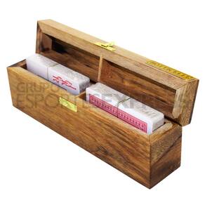 O Porta Baralho em Madeira para 2 Unidades da Botticelli é um item elegante e funcional, fabricado com madeira de Imbuia, conhecida por sua beleza natural e resistência.A Imbuia, uma madeira nobre de origem brasileira, se destaca pela tonalidade rica e pelos veios marcantes, proporcionando uma aparência sofisticada e distinta.Este estojo não só protege, mas também valoriza os baralhos com seu toque de requinte. Equipado com dobradiças e fecho em latão dourado, oferece uma durabilidade excepcional e um charme clássico.Com dimensões de 21x7x4,5cm, acomoda dois baralhos de cartas com praticidade e segurança.Acompanha 2 Jogos de Baralho.Ideal para quem aprecia produtos de qualidade e acabamento refinado, este porta baralho é uma excelente opção de presente para entusiastas de jogos de cartas e para aqueles que valorizam estilo e tradição.