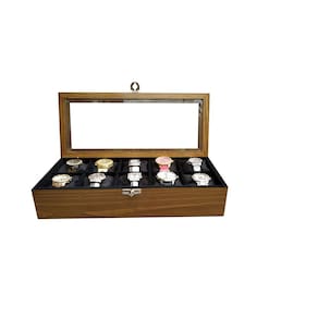 A caixa/estojo 10 Relógios Madeira Cerejeira Flocado de Preto é um produto prático e luxuoso, perfeito para organizar e proteger sua coleção de relógios. Feita com madeira maciça de qualidade, na linha madeira maciça encontramos um toque vintage e os veios naturais da madeira, proporcionando um ambiente sofisticado e elegante.