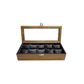 Caixa/estojo 10 Relógios Madeira Cerejeira Flocado de Preto