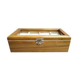 Características das caixas para relógio: - Fabricado em madeira maciça de qualidade - Padrão Cerejeira - Revestimento interno aveludado de Bege/Prata, inclusive as divisórias - Fecho giratório de pressão em metal suporta cadeado - Tampa de vidro 2 mm - Acompanha almofadas para todos os casulos