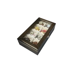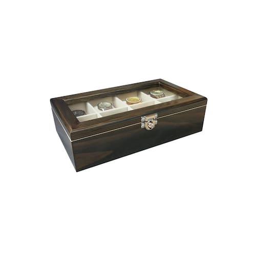 Seus relógios sempre bem protegidos e organizados com o Estojo para 08 relógios - Ébano flocado de bege. Fabricado em madeira maciça de qualidade, esse estojo oferece praticidade, segurança e um toque vintage para a sua coleção.