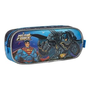 Complete a coleção Metal Force, da franquia Liga da Justiça, com este espetacular estojo. Com uma estampa exclusiva que destaca o Batman e o Super Homem, este estojo é perfeito para trazer um toque moderno e organização ao material escolar dos nossos pequenos justiceiros.