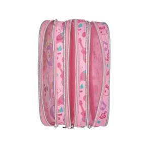 Coleção confeccionada em poliéster com estampa corrida, acabamentos iridescentes com glíter e zíper com puxadores de metal personalizados e etiqueta de tecido bordada em lurex na lateral.Dimensões do Produto:24 x 10,5 x 11 cm - 190g