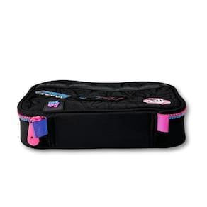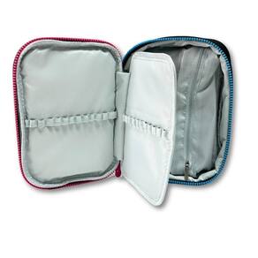 - Possui divisão com elásticos para prender diversos lápis e amplo espaço para mais lápis e materiais diversos. Possui ainda uma bolsinha dentro do estojo. Cabe muita coisa