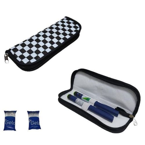 Estojo na cor/estampa quadriculado preto e branco, caso queira outra cor/ estampa, entrar em contato ou selecionar dentro dos outros anuncios. Acompanham 2 gelinhos de gel 15 gramas cada , que utilizados no estojo aumentam o tempo de conservação da sua insulina. Estojo térmico com 4 camadas: 1 estampa/ cor escolhida; 2 manta pack é o produto mais indicado para controle de temperatura 3 manta aluminizada redução de temperatura aproximadamente de 6c a 8c 100% impermeável 4 nilón onde é fixado os elásticos e os bolsos, produto que tem a função de estruturação da peça, além de permitir a limpeza Observação: itens nas fotos internas dos estojos, não acompanha o produto são meramente ilustrativos. Dimensões do estojo: Exterior: Comprimento: 23cm Largura: 8cm Profundidade: 3cm Interior: Tamanho dos bolsos: 2 bolsos de: Comprimento: 11cm Largura: 6 cm obs: medidas podem ter pequenas variações por se tratar de um produto confeccionado Marca: Não Informado Ean: 7894606829294